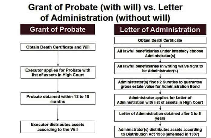 Under the Distribution Act 1958 (amended 1997), the lawful beneficiaries, through written consent, agree to appoint an administrator, who would then apply for a Letter of Administration (LA) through the High Court. Two administrators have to be appointed if minor beneficiaries are involved.
